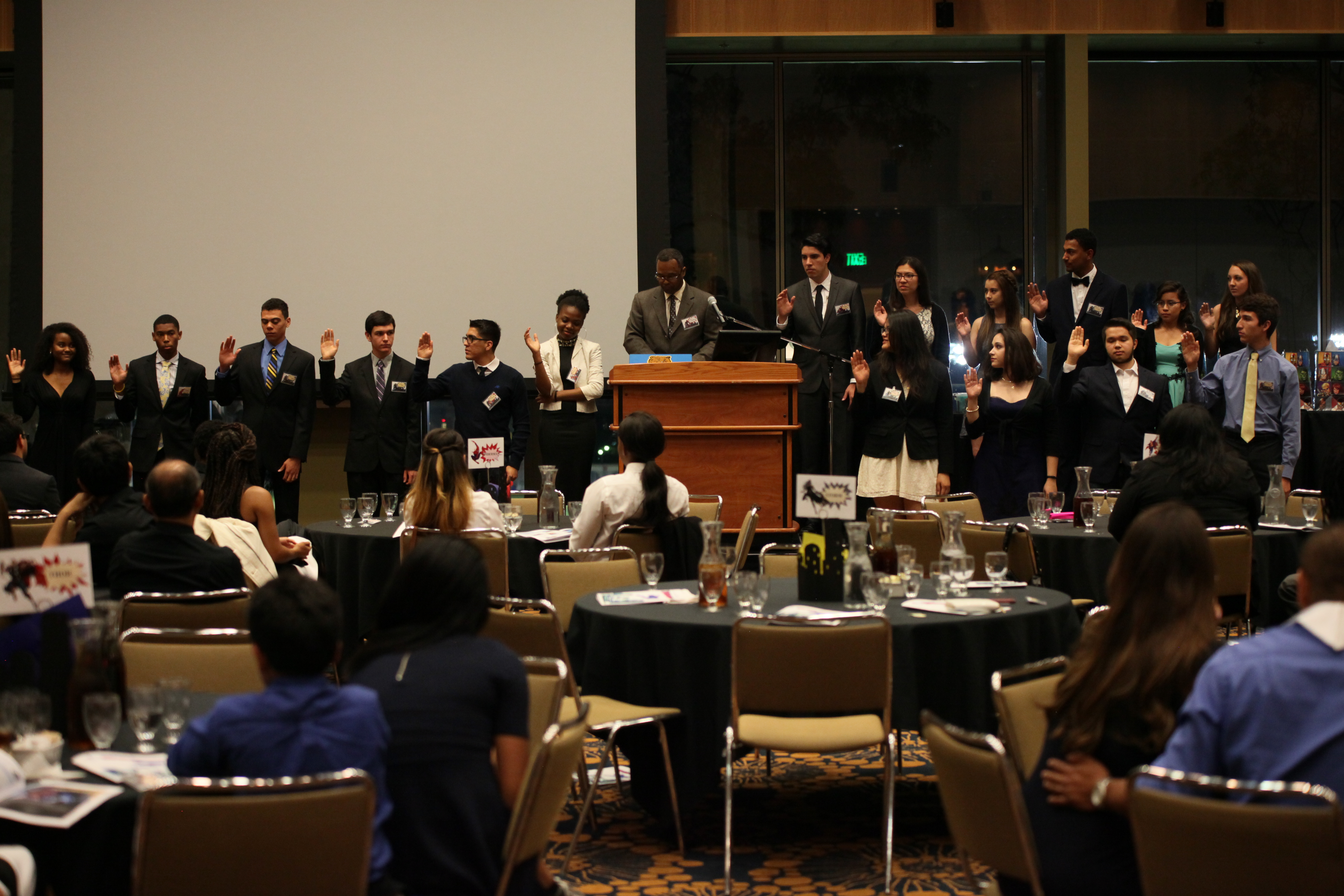 On Friday, 05/22/15, the UCLA chapters of the American Indian Science and Engineering Society (AISES), the National Society of Black Engineers (NSBE), and the Society of Latino Engineers and Scientists (SOLES), held their 4th Annual Tri-Org Banquet, to honor this year’s graduates and to install the officers for the 2015-16 academic year. The banquet was held at the Carnesale Commons: Palisades Ballroom. AISES External Vice-President Justine Figuerres and NSBE Vice-President Morolake Omoya served as Co-Mistresses of Ceremony, at the event.
